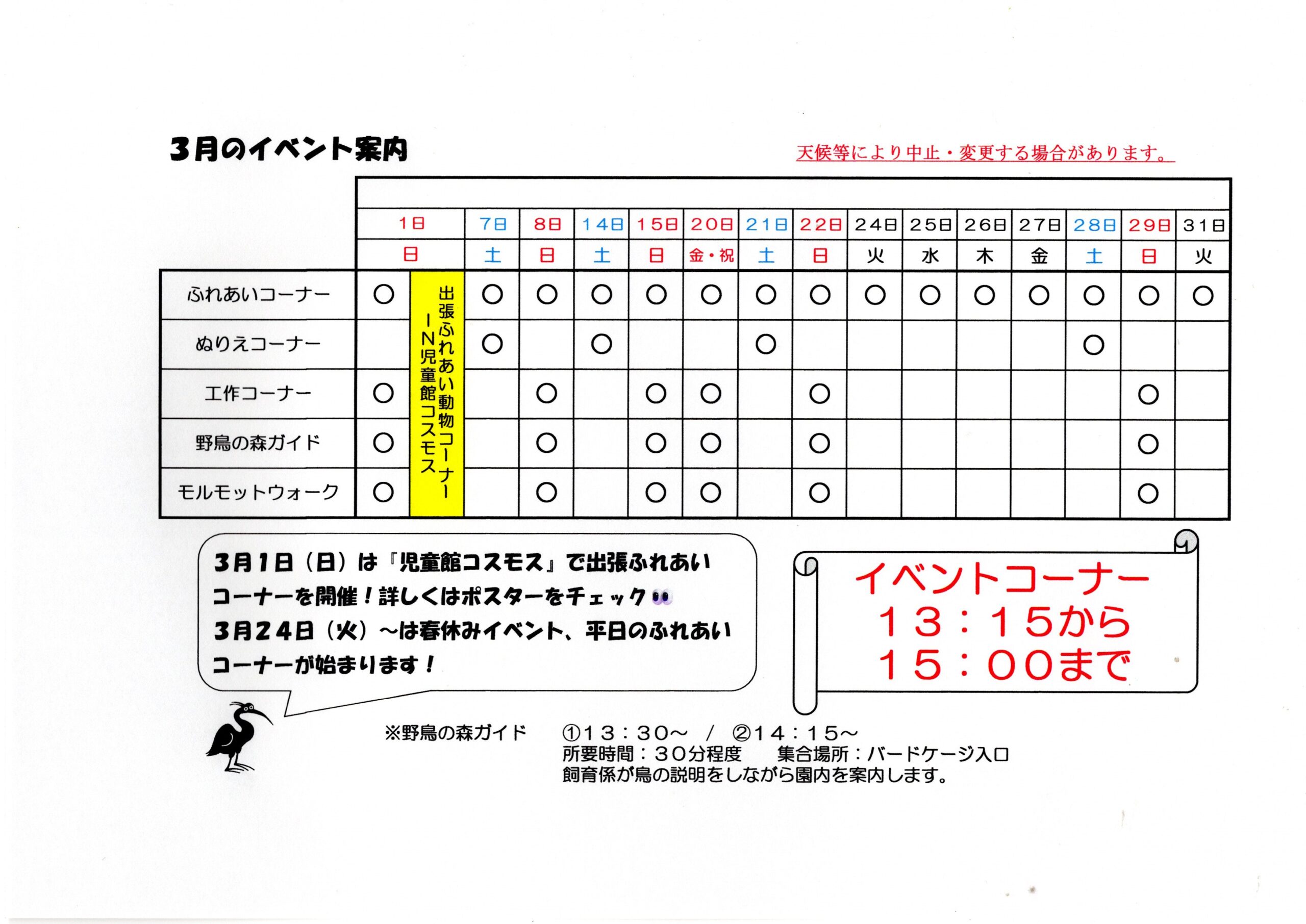 3月のイベント : 越谷 キャンベル野鳥の森